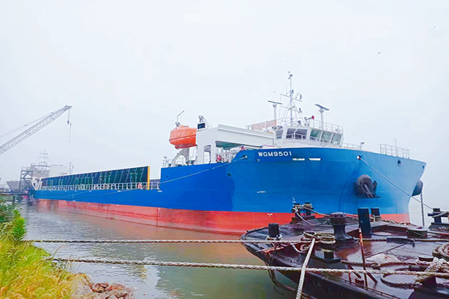 9500載重噸級甲板運輸船離泊2023年8月14日上午,云南能投聯(lián)合外經(jīng)股份有限公司與江蘇正嶼船舶重工有限公司合作建造的一艘9500載重噸級...
